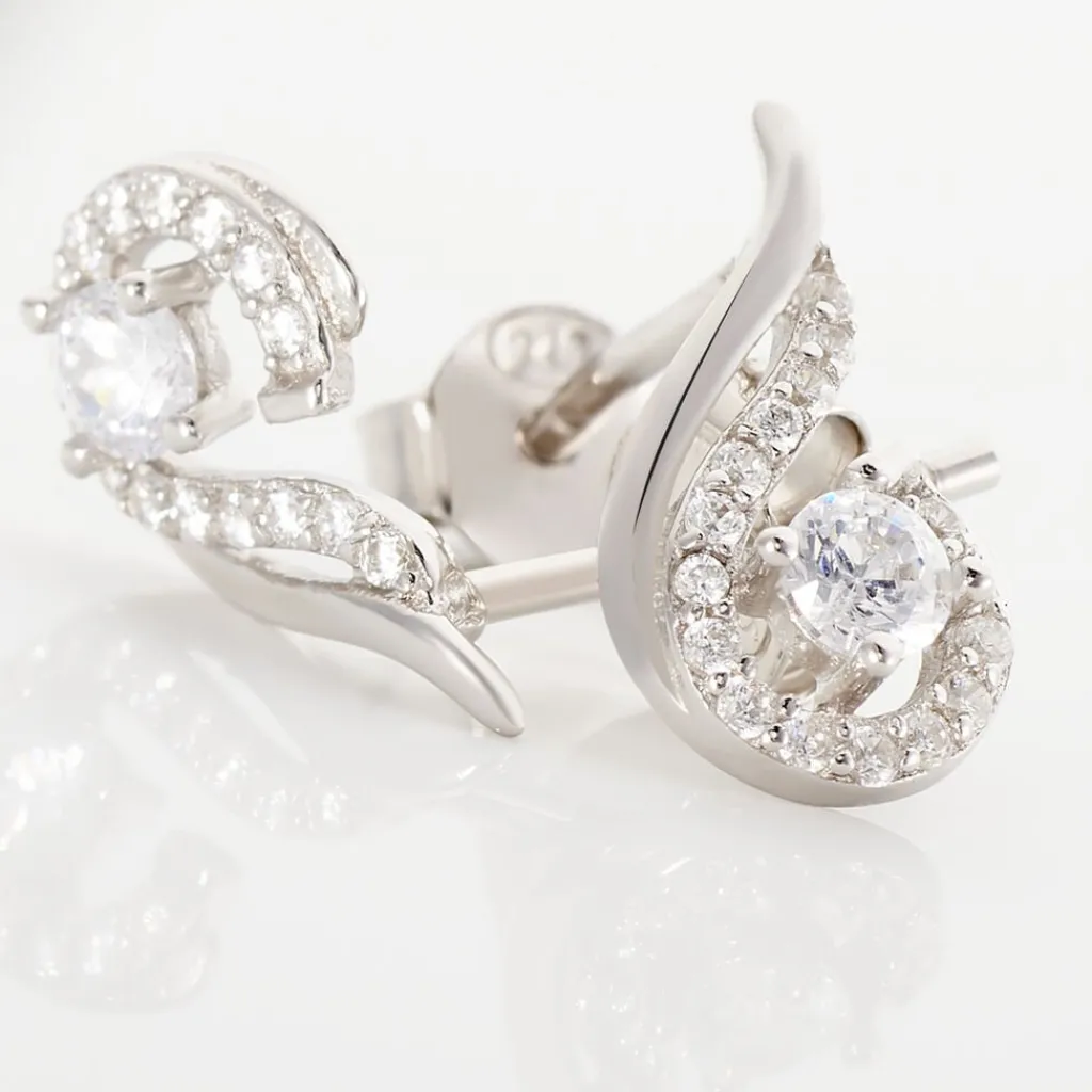 Boucles D’oreilles Argent Blanc 925/1000 Oxydes Centraux Entourages Oxydes De Zirconium