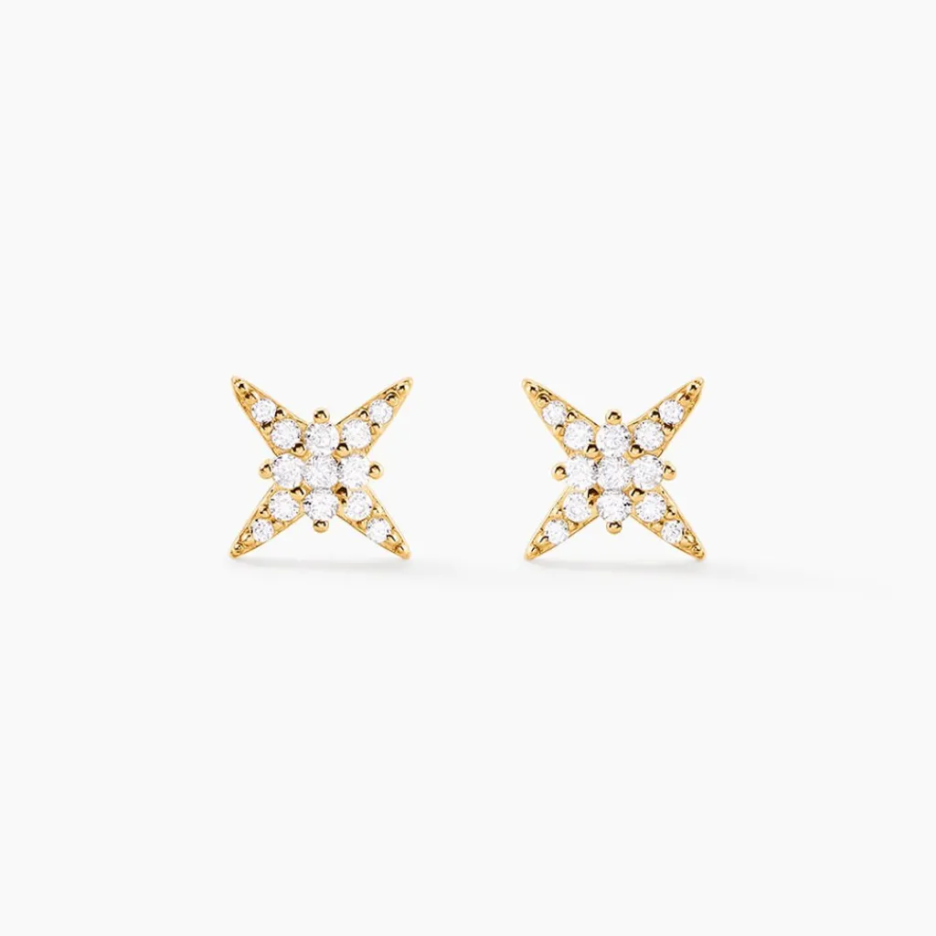Bo Puces Or Jaune 375/1000 Étoile Oxyde De Zirconium Blanc Serti Pavage
