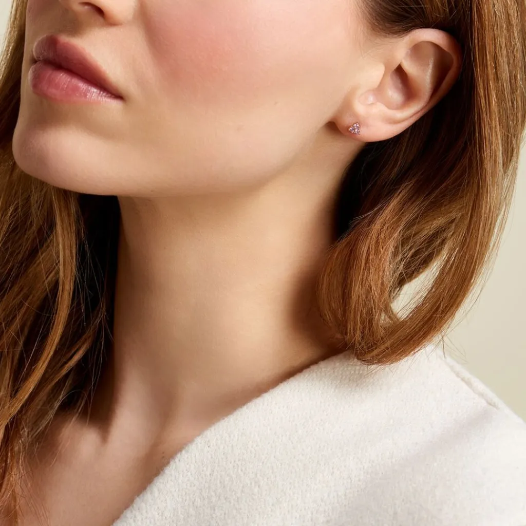 Boucles D’oreilles Puces Plaqué Or Jaune Trio Oxydes De Zirconium Roses
