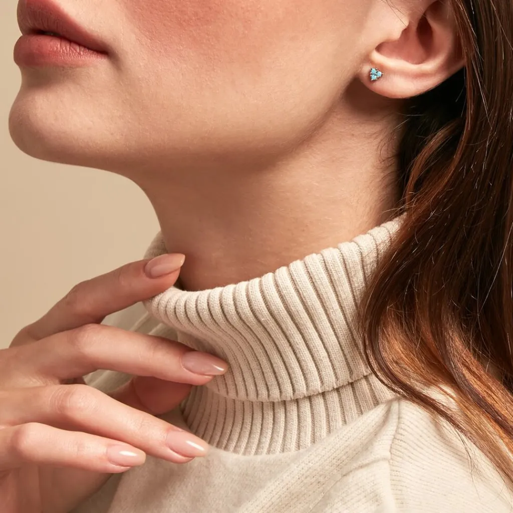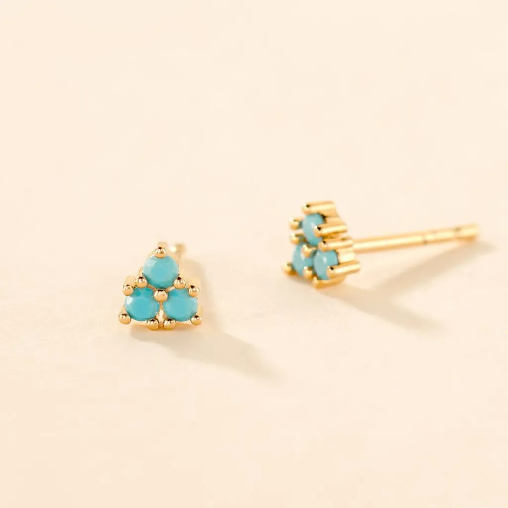 Boucles D’oreilles Puces Plaqué Or Jaune Trio Pierres De Synthese Turquoise