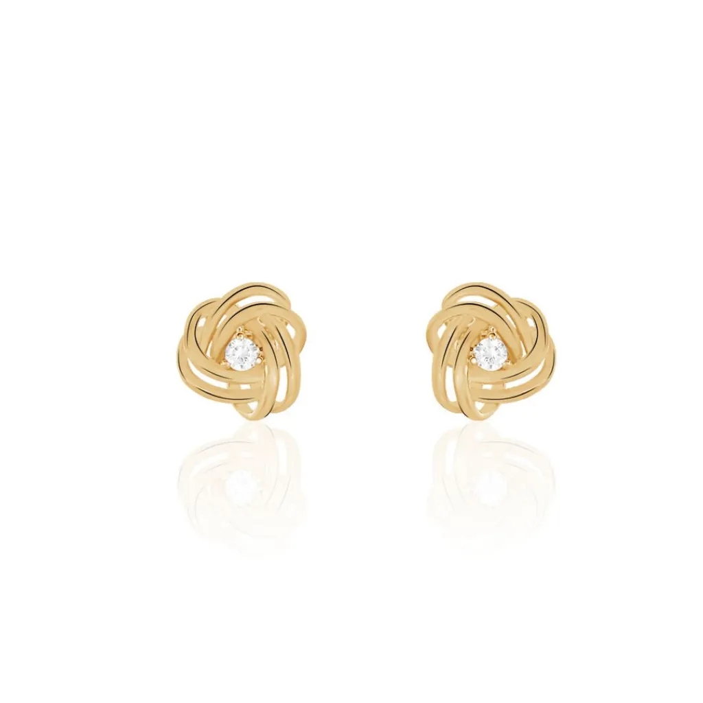 Boucles D’oreilles Puces Plaqué Or Jaune Nids Oxydes De Zirconium