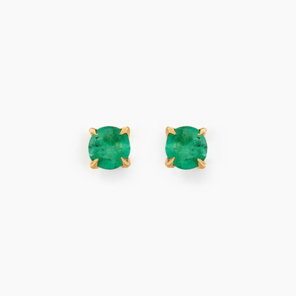 Boucles D’oreilles Or Jaune 375/1000 Emeraude 3mm