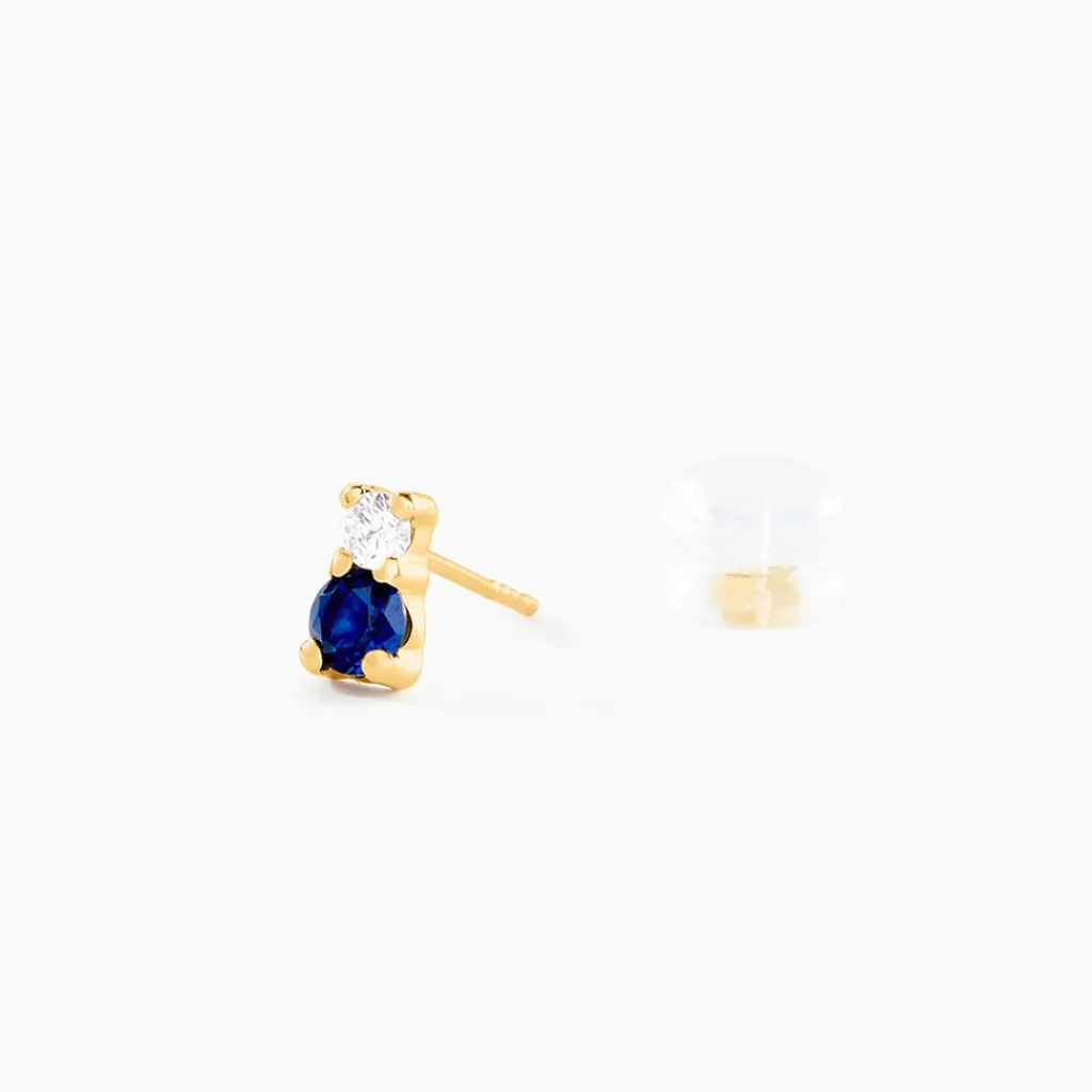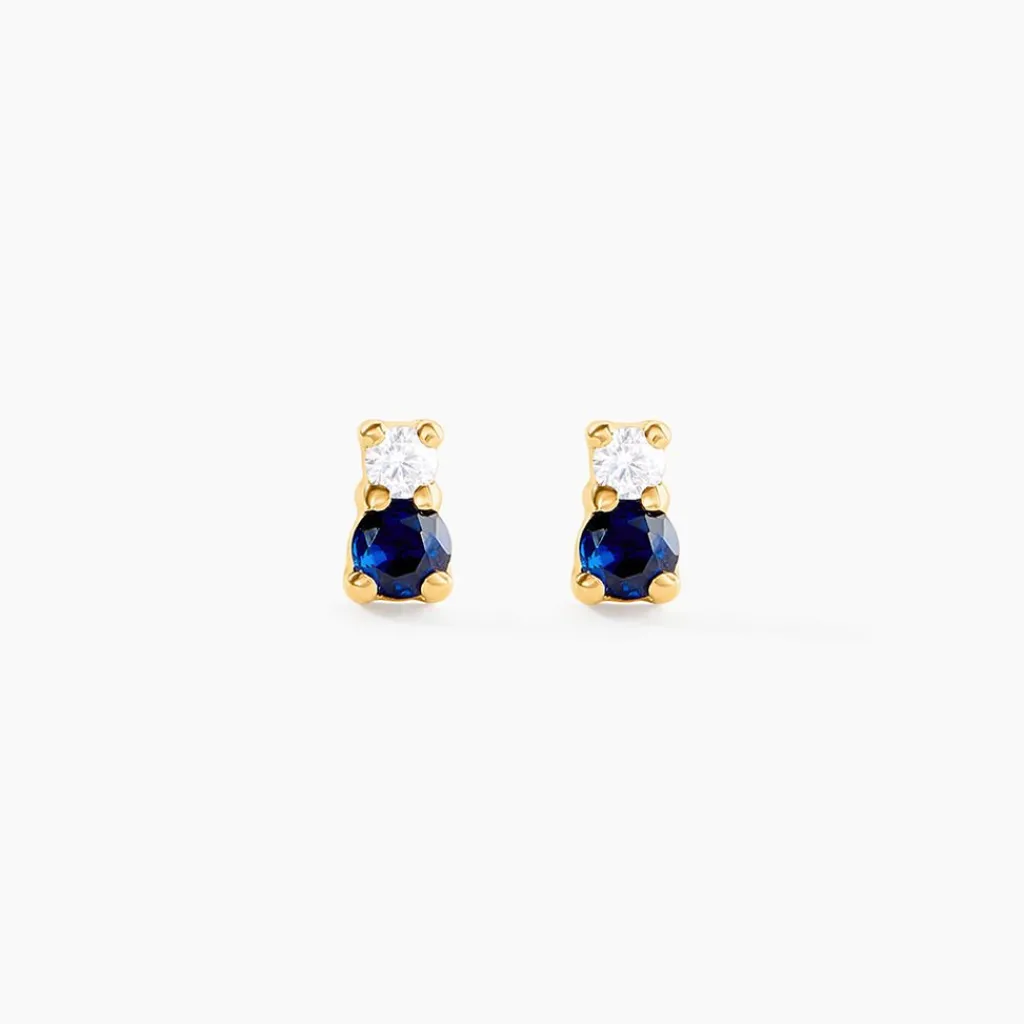 Bo Puces Or Jaune 375/1000 Oxyde De Zirconium Bleu Serti 4 Griffes