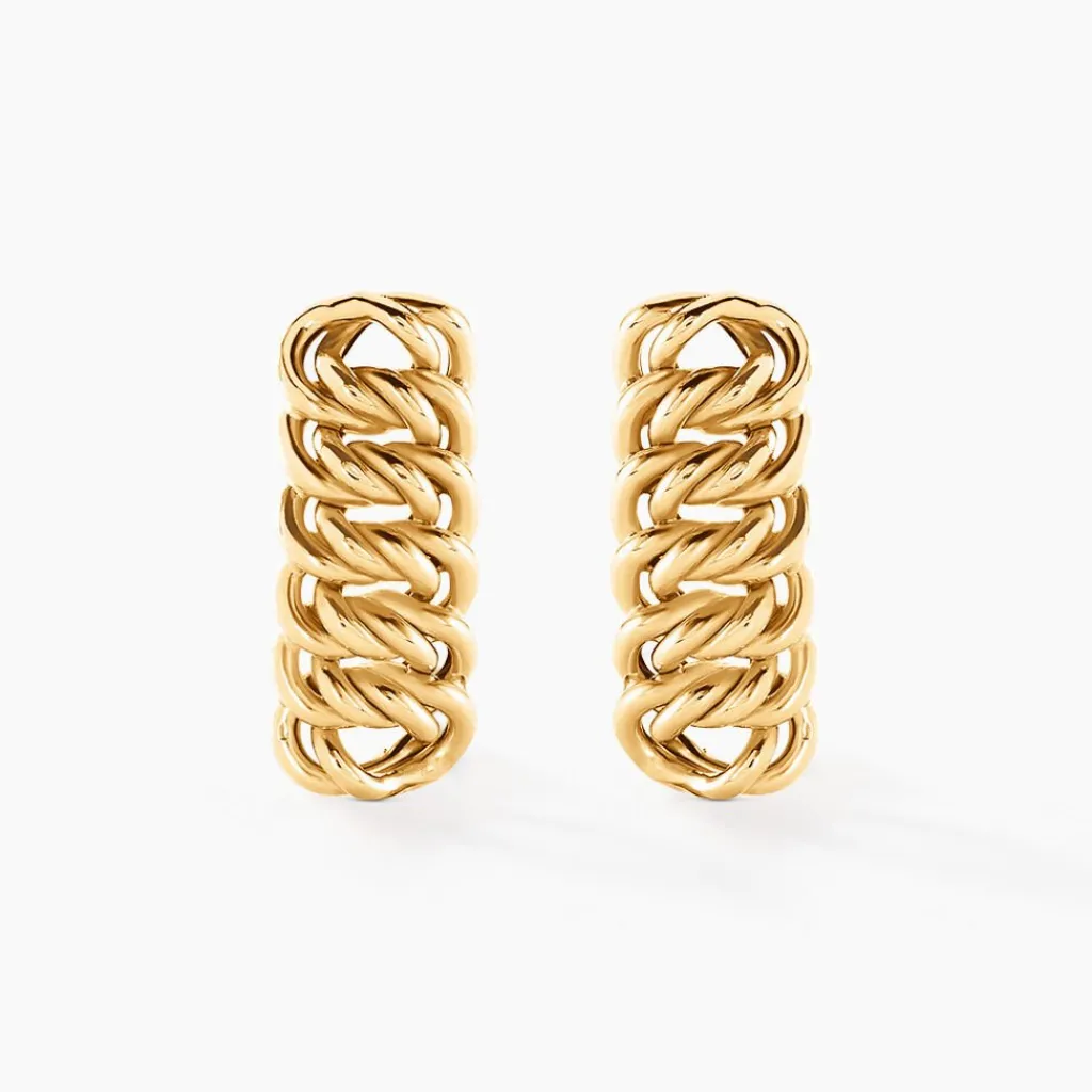 Boucles D’oreilles Puces Or Jaune 750/1000 Maille Americaine Longueur 17mm Largeur 7mm