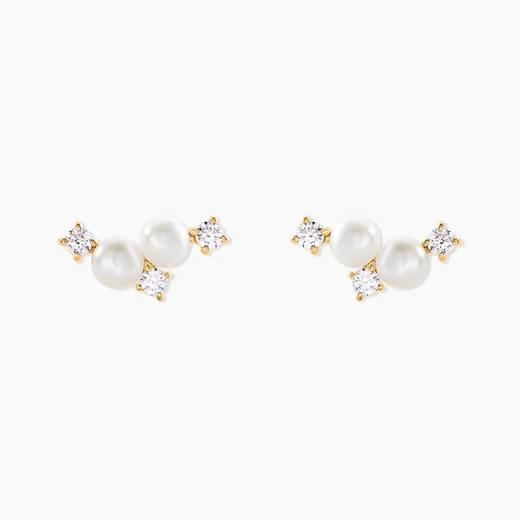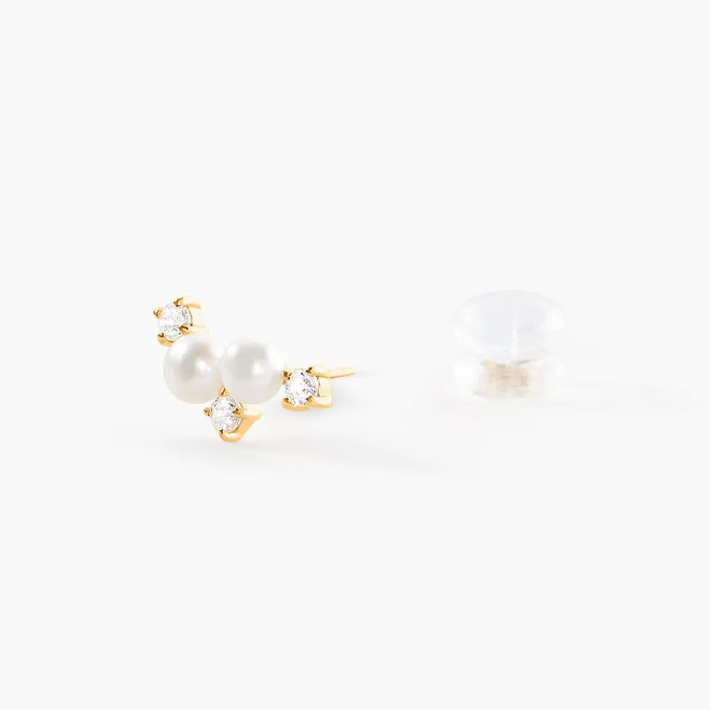 Boucles D’Oreilles Puces Or Jaune 375/1000 Multiperles Perles De Culture Boutons 3,5Mm Accompagnees Oxydes De Zirconium