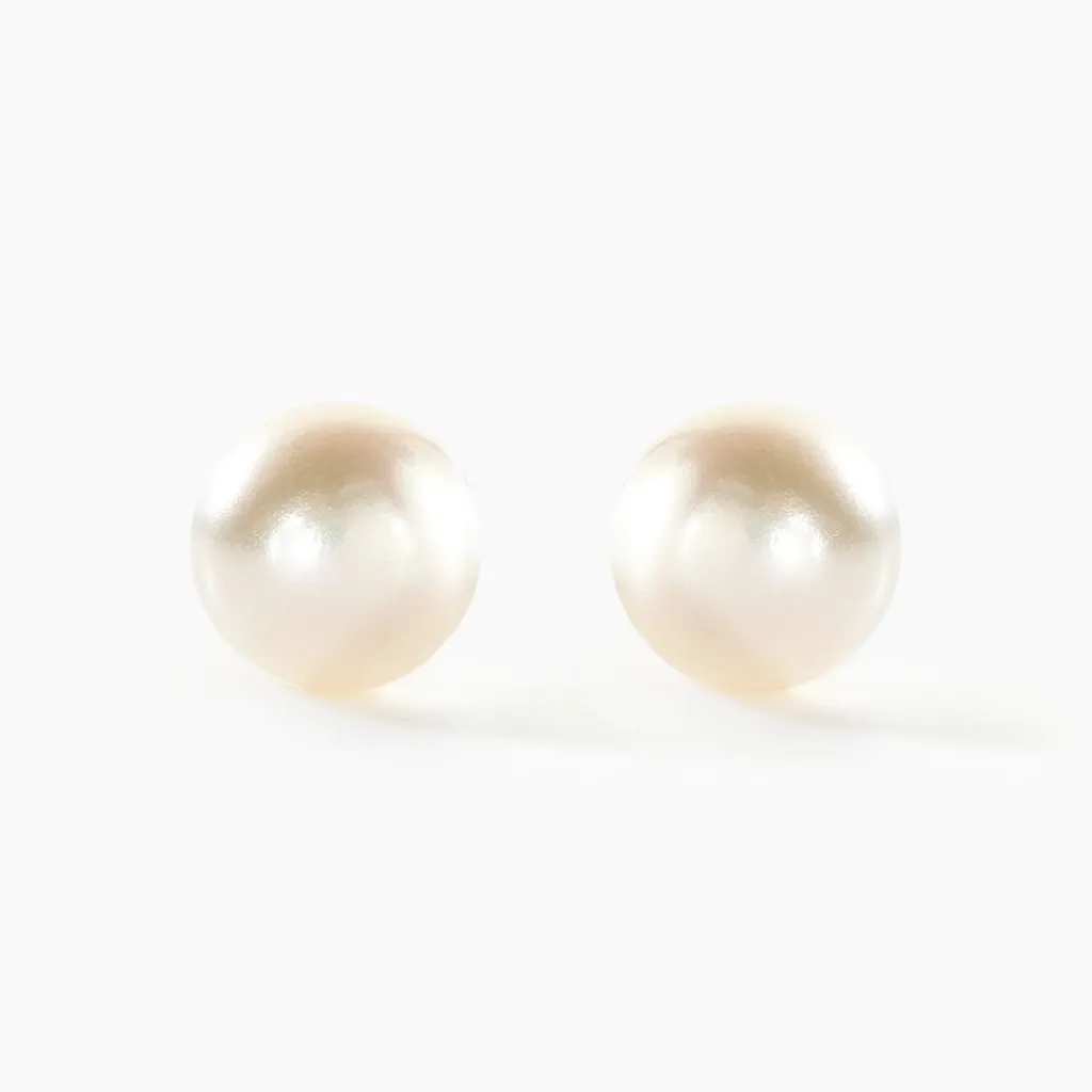 Boucles D’oreilles Or Jaune 375/1000 Perles De Culture Nacres Forme Bouton 6/6.5mm