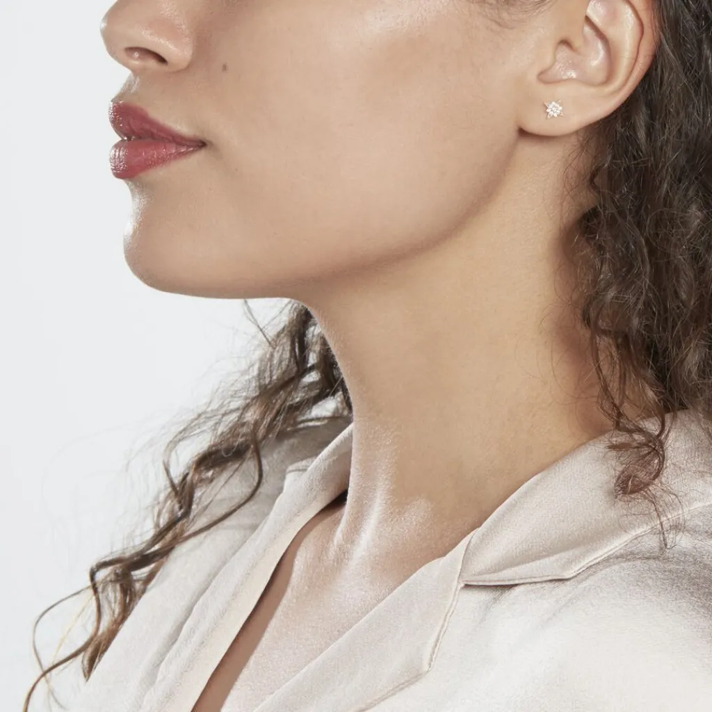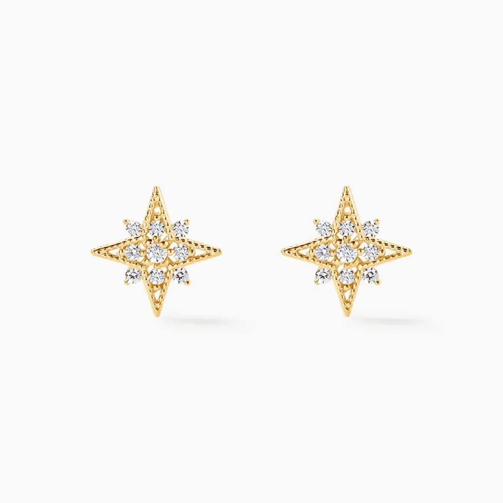 Boucles D’oreilles Puces Or Jaune 375/1000 Météorite Oxydes De Zirconium