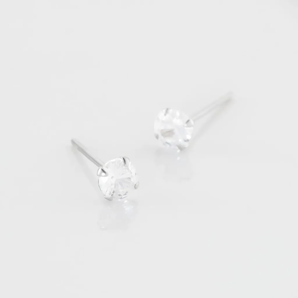 Boucles D’oreilles Puces Argent Blanc 925/1000 Oxydes De Zirconium Blanc 4mm