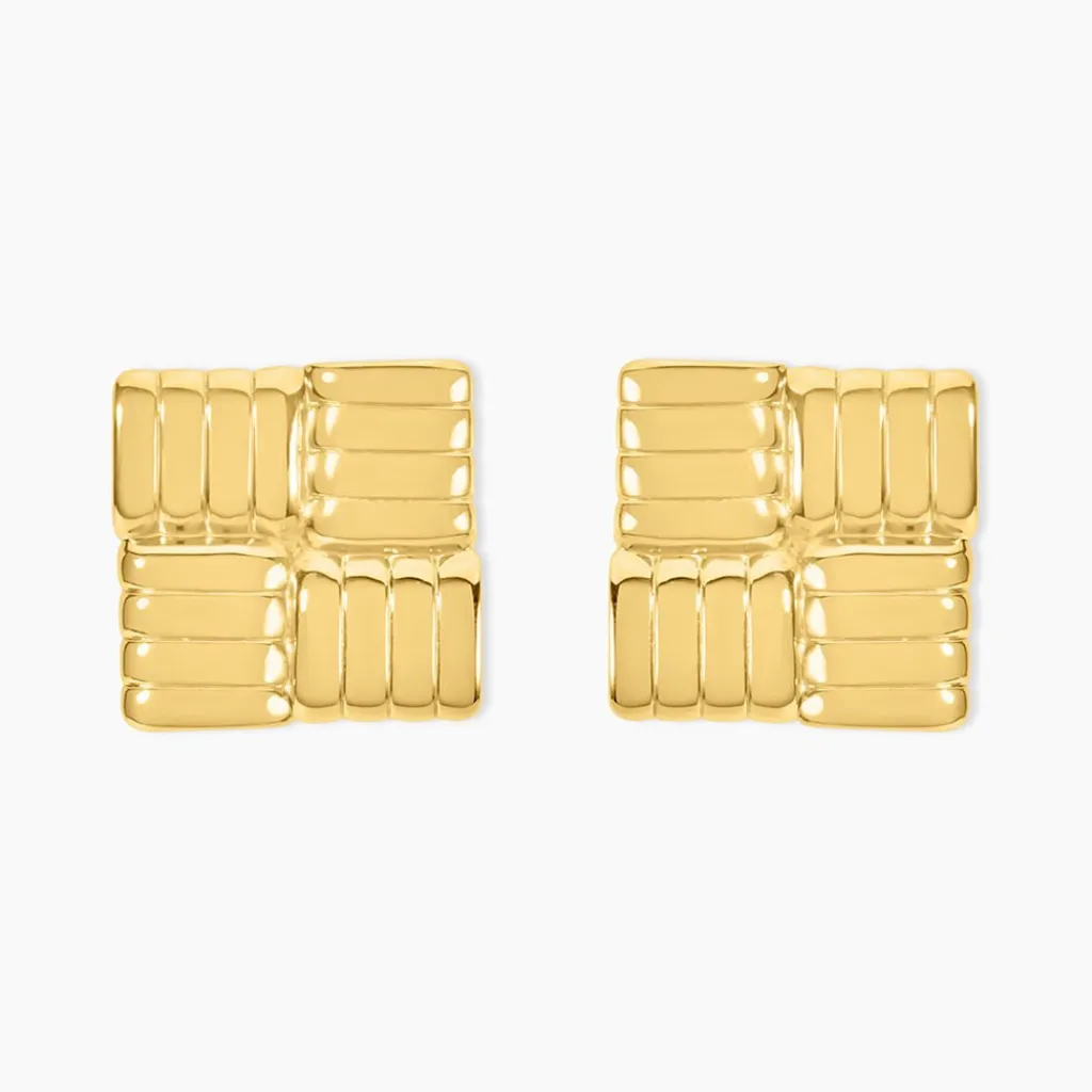 Boucles D’Oreilles Puces Acier Inoxydable Jaune Carrées Effet Croise