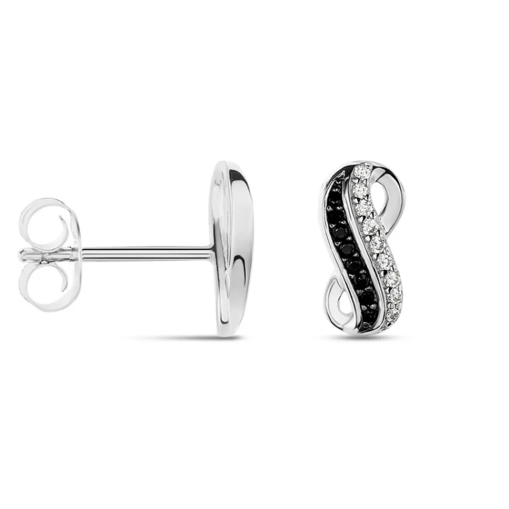 Boucles D’oreilles Puces Argent Blanc 925/1000 Infini Pavage Oxydes De Zirconium