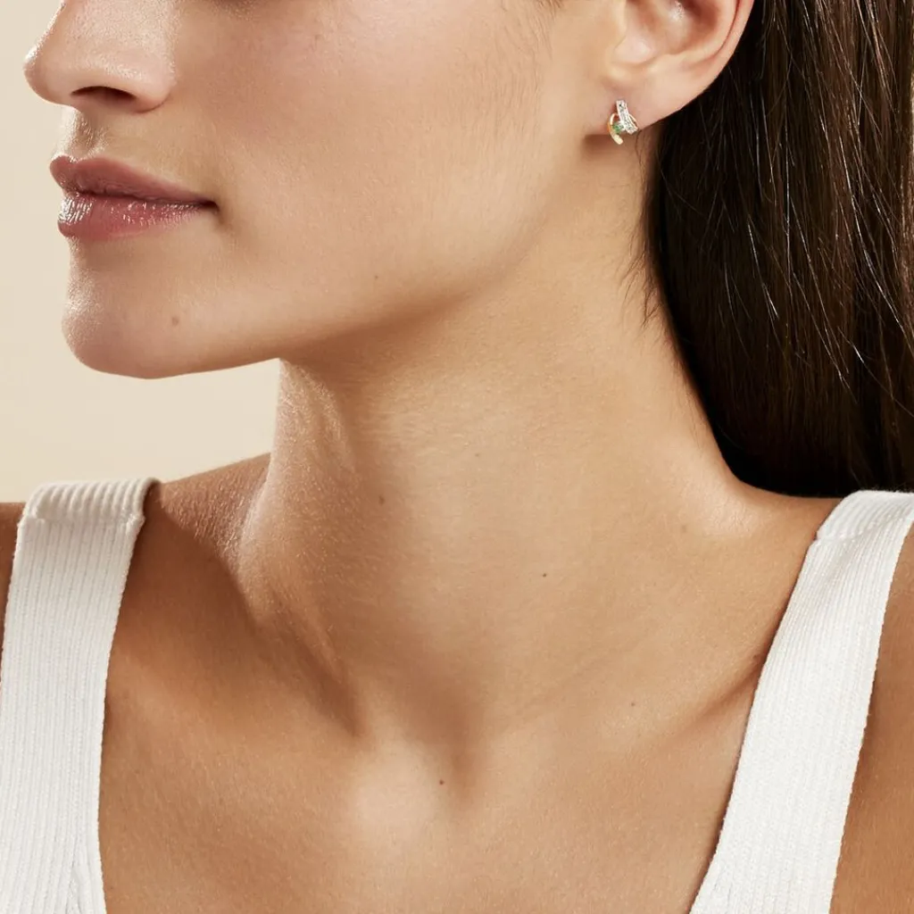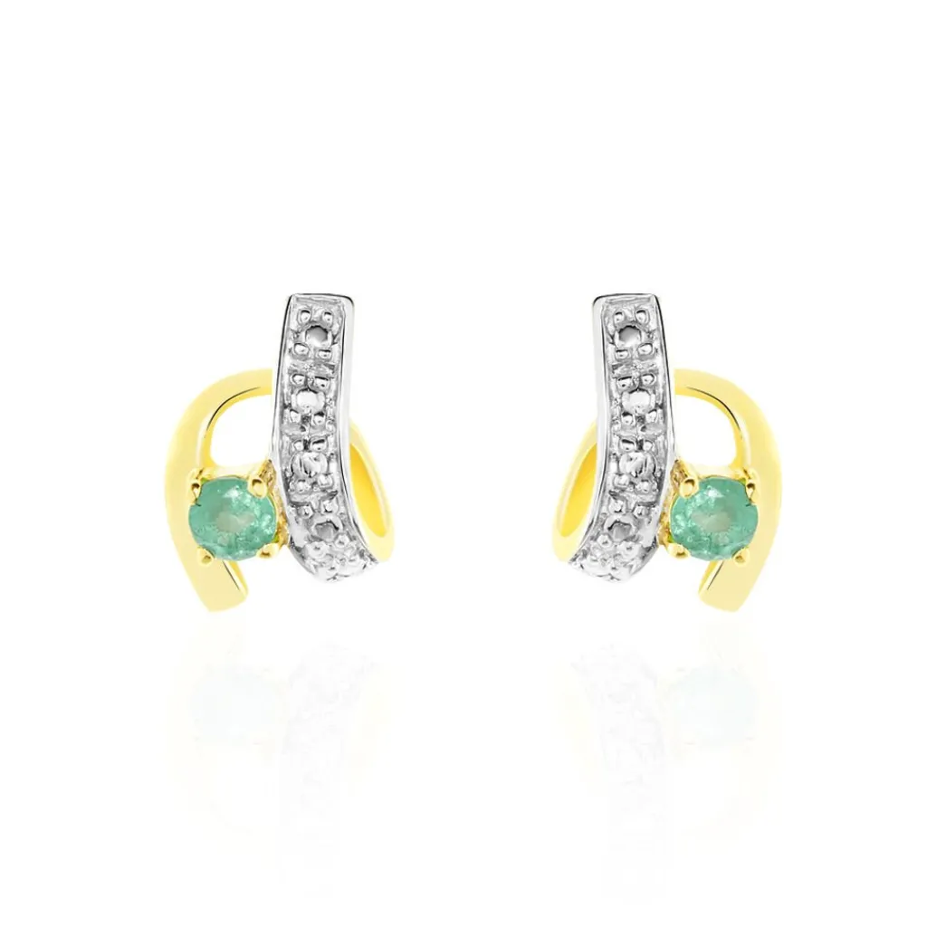 Boucles D’oreilles Or Jaune 375/1000 Formes Vagues Emeraudes