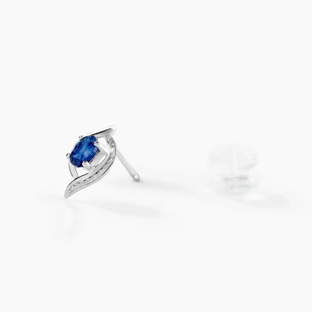 Boucles D’oreilles Or Blanc 375/1000 Saphir Ovale Serti 4 Griffes Lydia