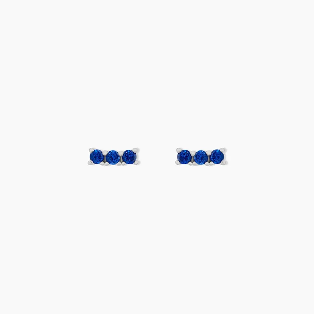 Boucles D’oreilles Puces Argent Blanc 925/1000 Trilogie Spinelles Bleues