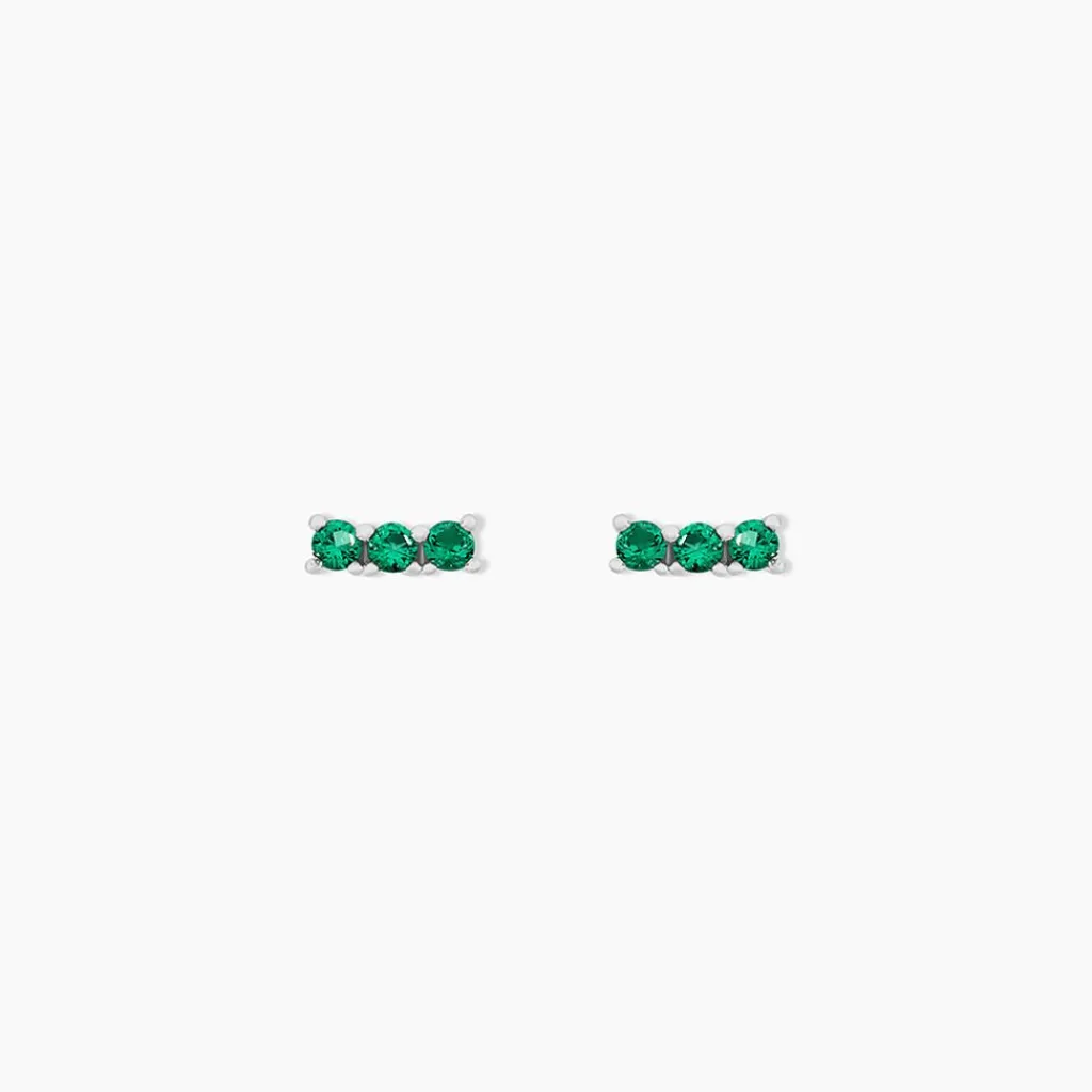 Boucles D’oreilles Puces Argent Blanc 925/1000 Trilogie Spinelles Vertes