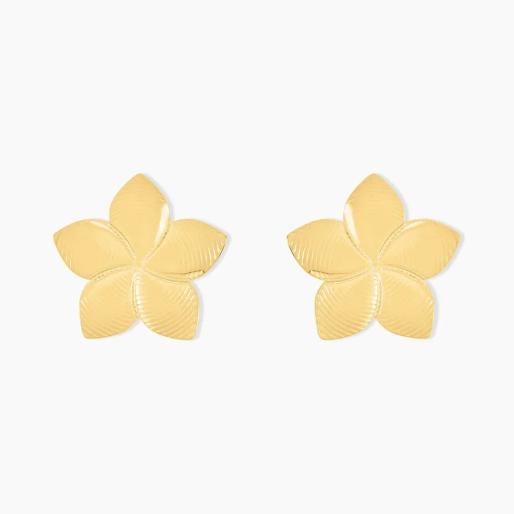 Boucles D’oreilles Puces Acier Jaune Fleur Strié