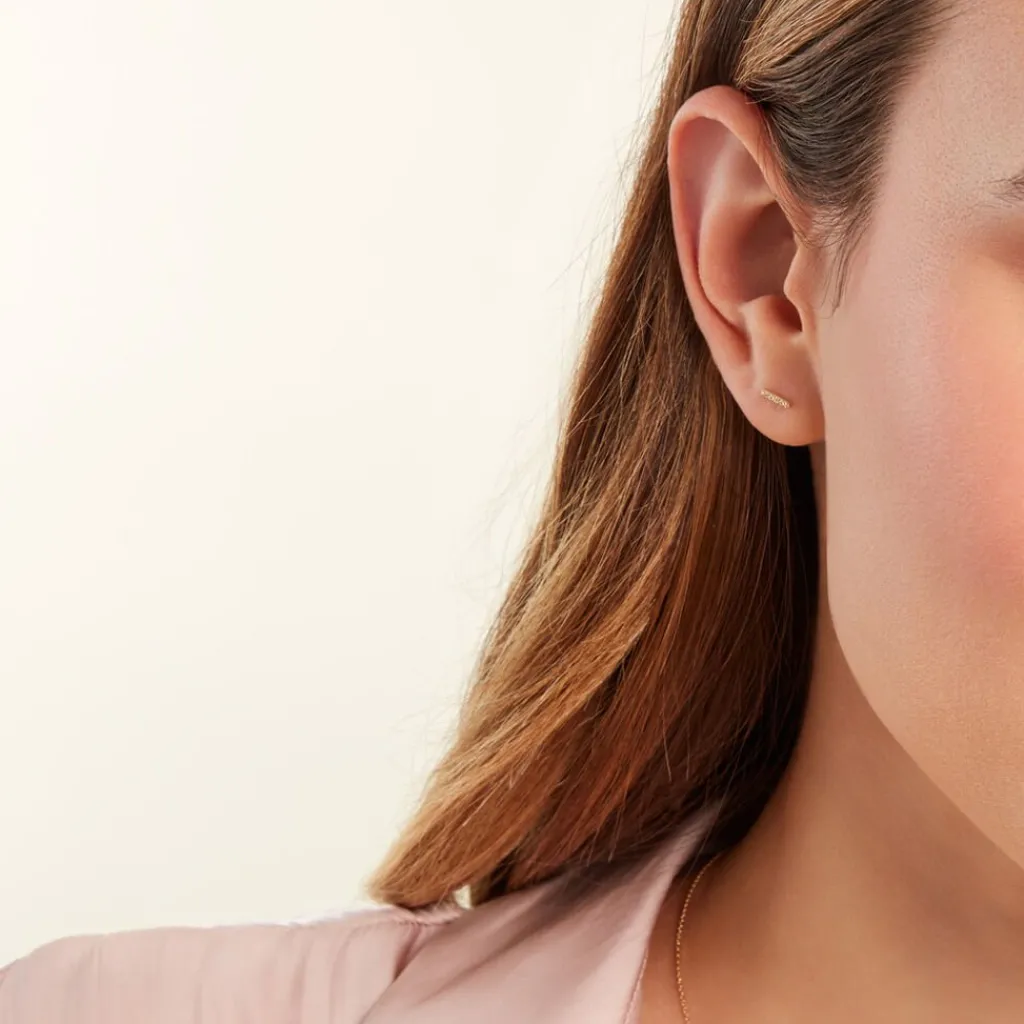 Boucles D’oreilles Puces Or Jaune 375/1000 Barre Pavage Diamants