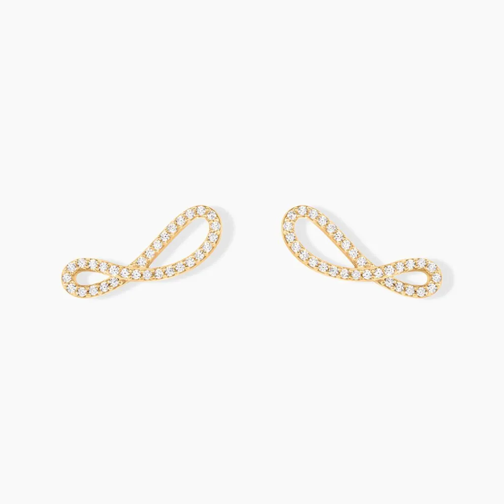 Boucles D’oreilles Puces Plaqué Or Jaune Infini Pavage Oxydes De Zirconium
