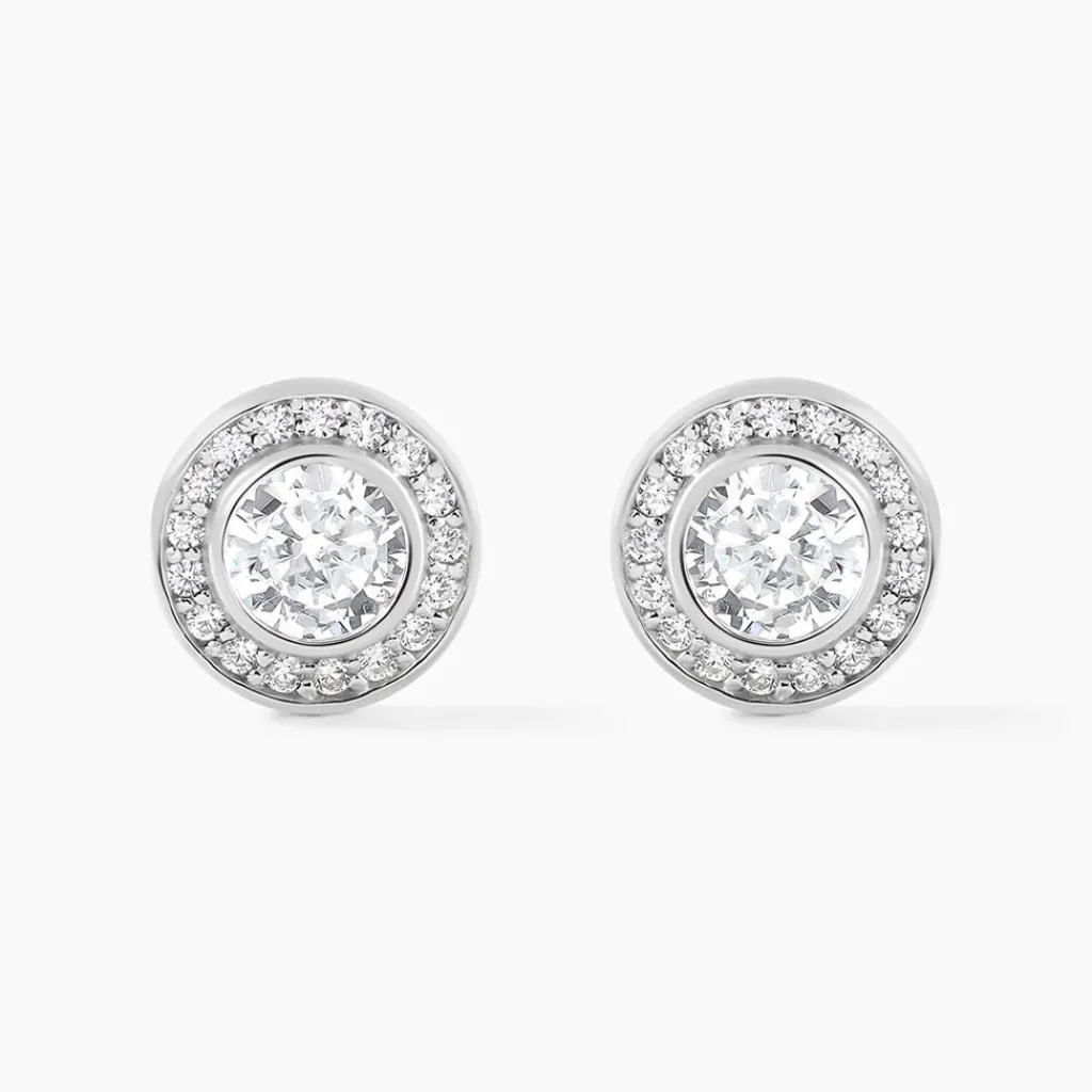 Boucles D’oreilles Argent Blanc 925/1000 Formes Rondes Oxydes De Zirconium
