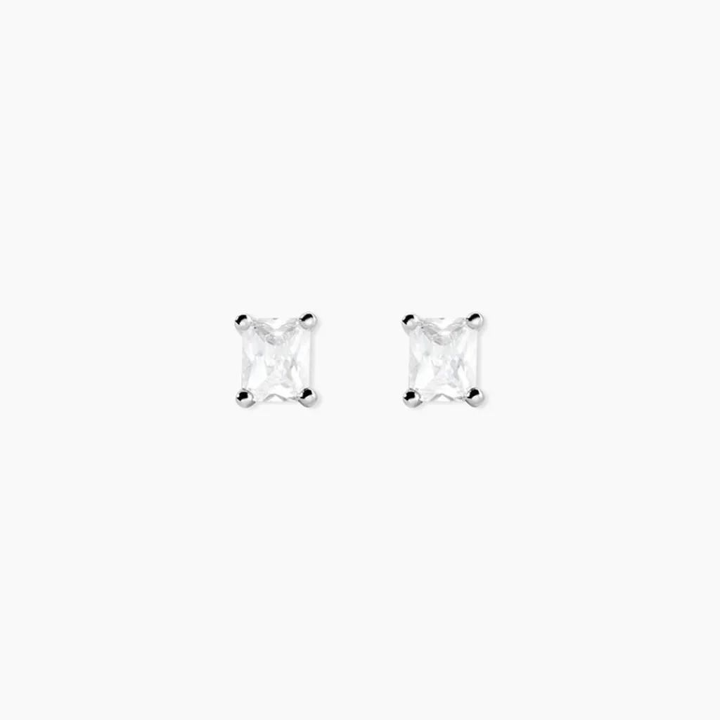 Boucles D’oreilles Puces Argent Blanc 925/1000 Formes Rectangles Oxydes De Zirconium 4x5mm