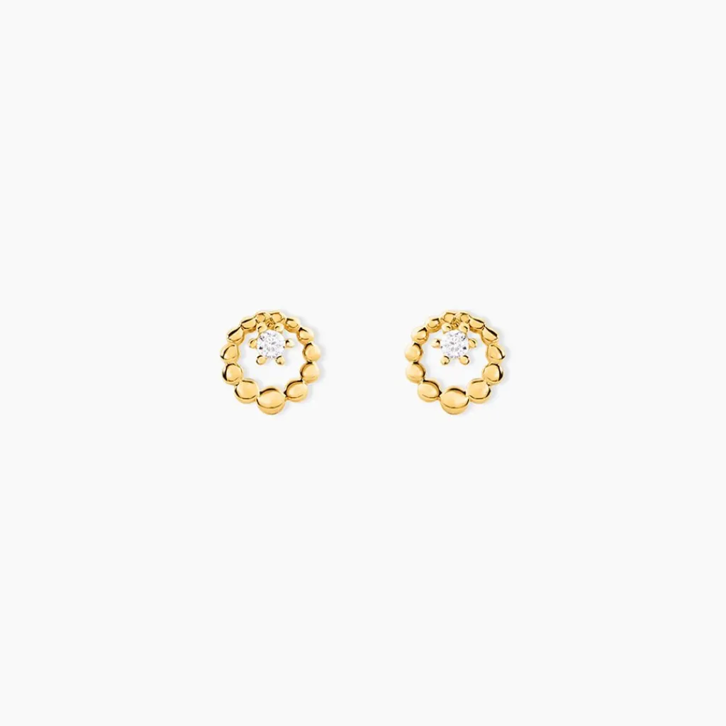 Bo Puces Or Jaune 375/1000 Cercle Oxyde De Zirconium Blanc Serti 6 Griffes