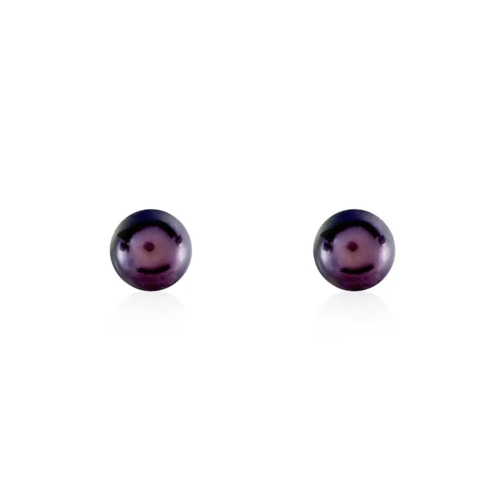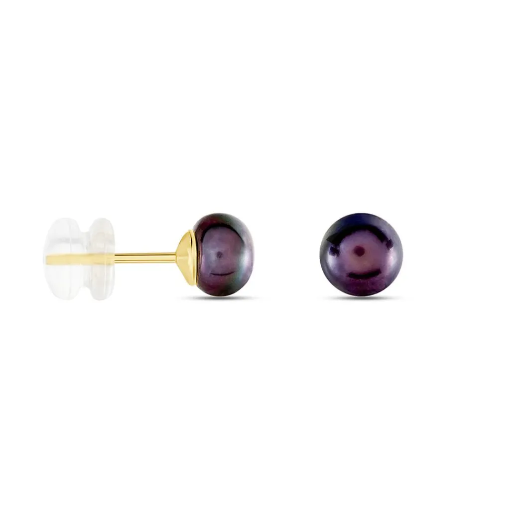 Boucles D’oreilles Or Jaune 375/1000 Perles De Culture Bouton Teintées Noires 6/6.5mm