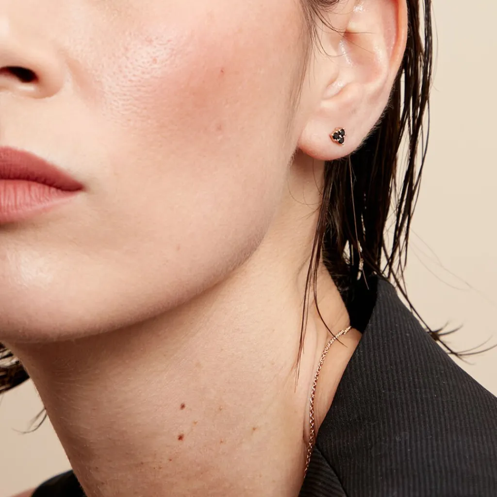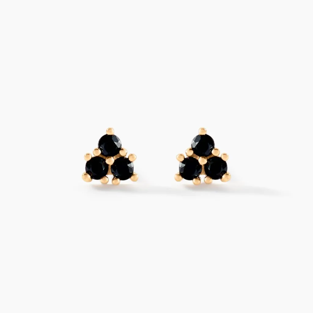 Boucles D’oreilles Puces Plaqué Or Jaune Trio Oxydes De Zirconium Noirs