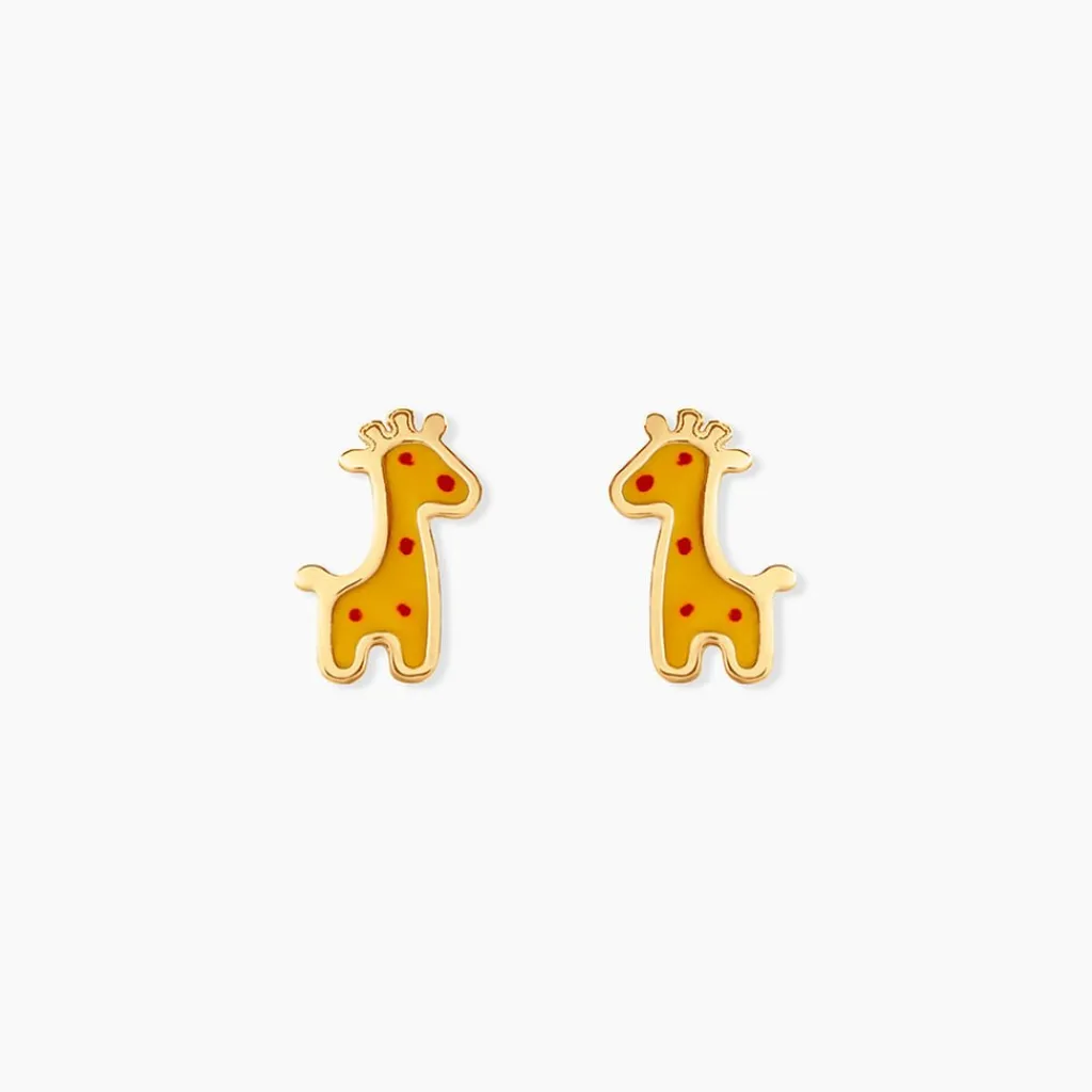 Boucles D’Oreilles Puces Or Jaune 375/1000 Girafes Email Orange
