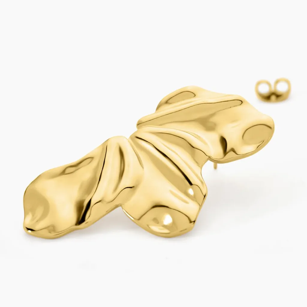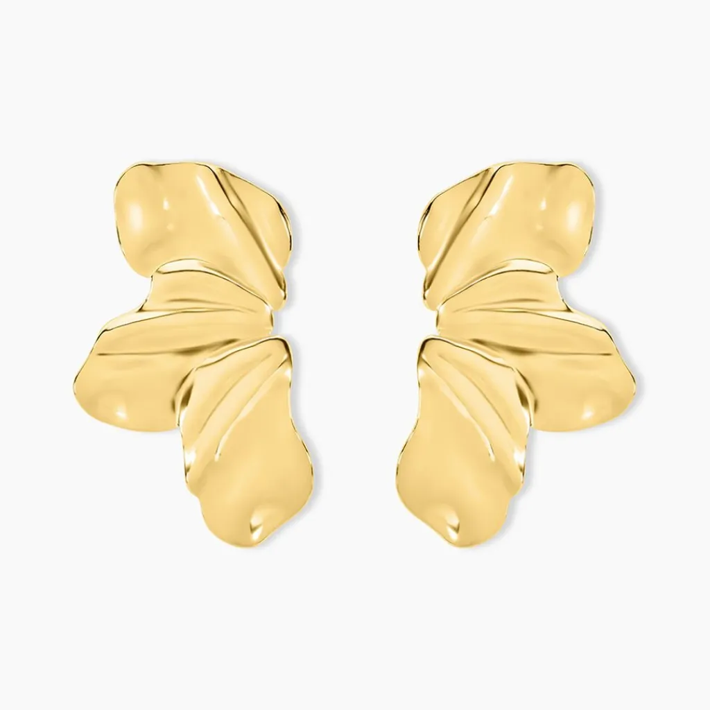 Boucles D’oreilles Puces Acier Jaune Pétale Froissé