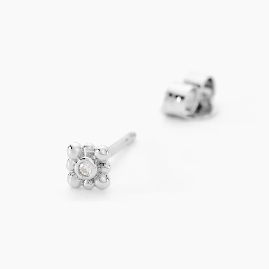 Créoles Argent Blanc 925/1000 Fleur Ajourée Oxydes De Zirconium Diamètre 10.6mm