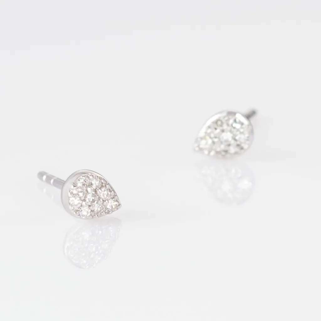 Boucles D’oreilles Or Blanc 375/1000 Goutte Microsetting Diamants