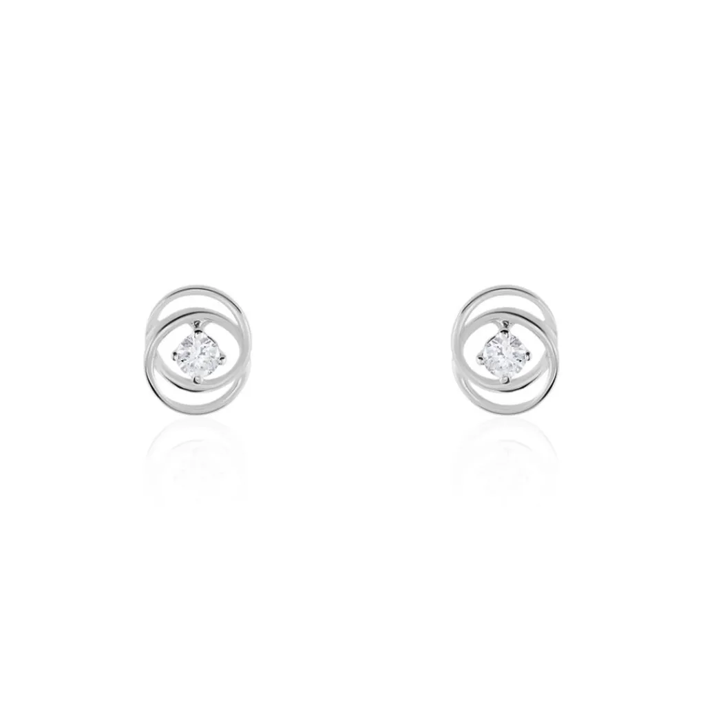 Boucles D’oreilles Puce Or Blanc 375/1000 Nid D’amour Diamants 0.08cts