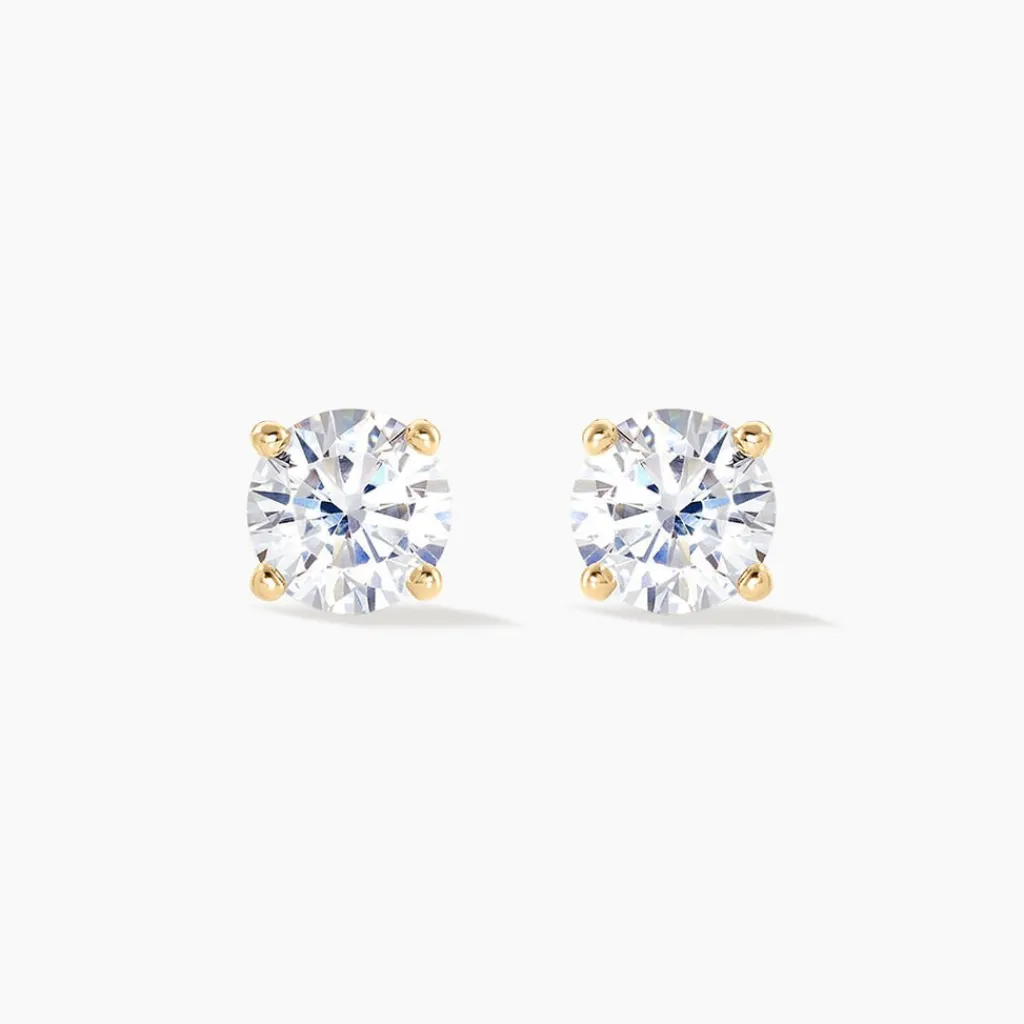 Boucles D’oreilles Puces Plaque Or Jaune Oxydes De Zirconium 6mm Sertis 4 Griffes