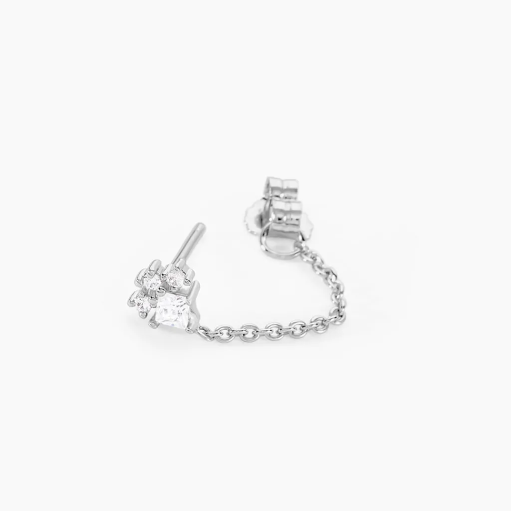 Boucles D’oreilles Puces Argent Blanc 925/1000 Oxydes De Zirconium Chaînes Jaseron 2.2cm
