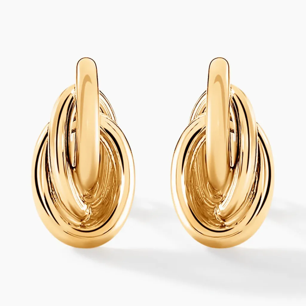 Boucles D’oreilles Puces Or Jaune 750/1000 Noeud Antillais Lisses Et Rayes