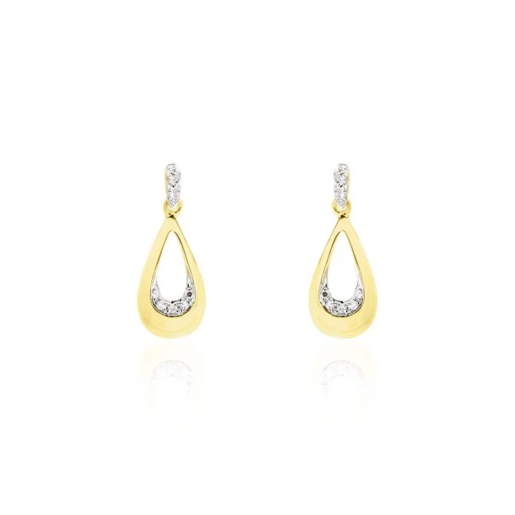 Boucles D’oreilles Or Jaune 375/1000 Formes Gouttes Pavages Diamants