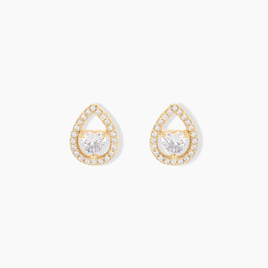 Boucles D’oreilles Puces Plaqué Or Jaune Gouttes Oxyde De Zirconium C艙ur Et Entourage Oxydes De Zirconium