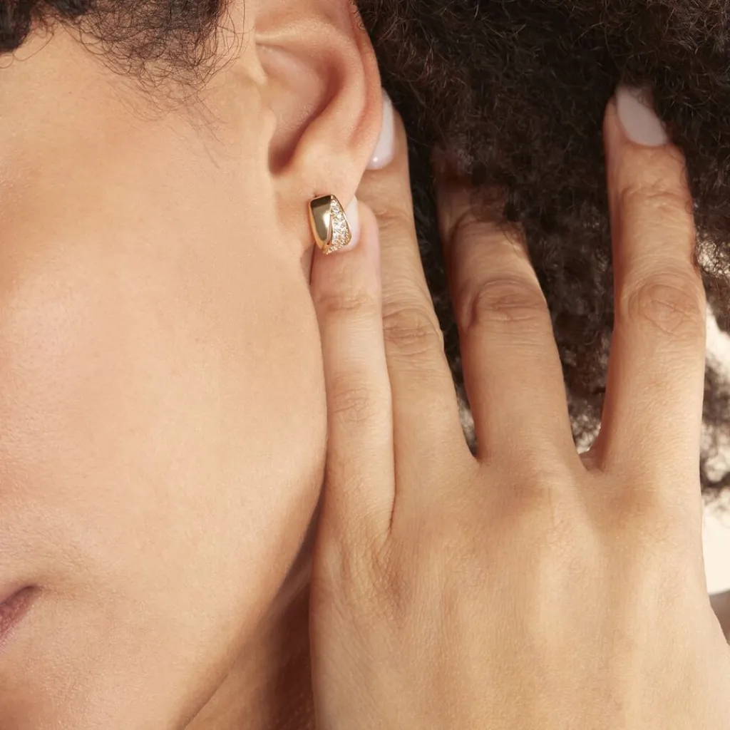 Boucles D’oreilles Plaqué Or Jaune Formes Classiques Oxydes De Zirconium