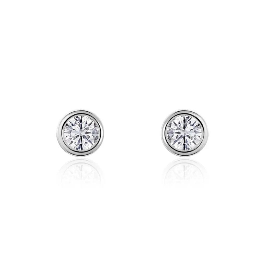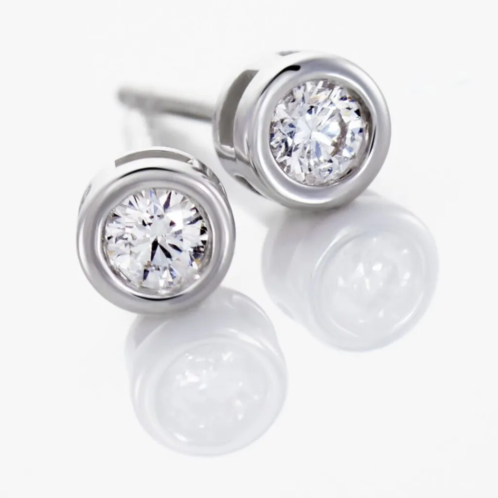 Boucles D’oreilles Puces Or Blanc 375/1000 Diamants Sertis Clos 0.10 Cts