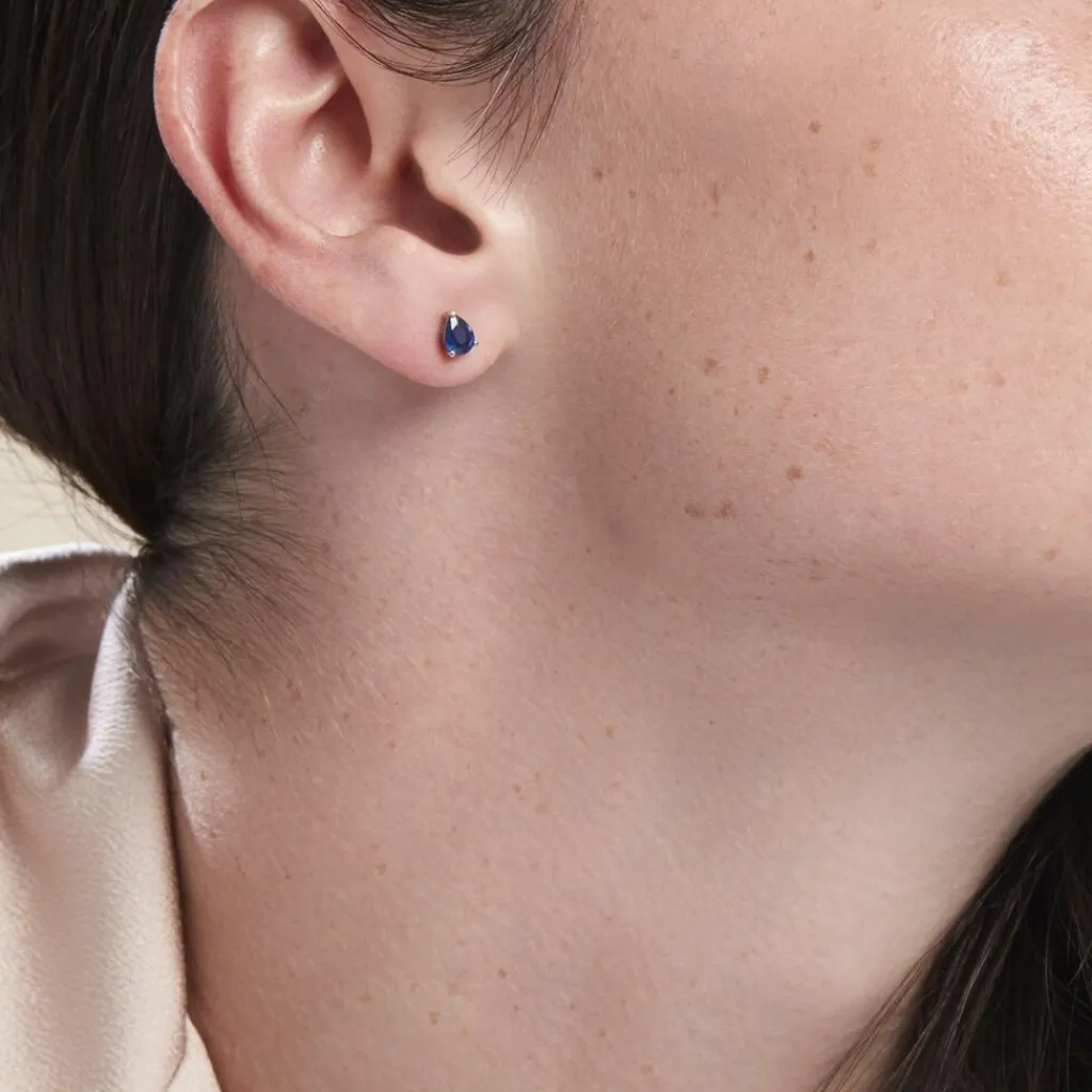 Boucles D’oreilles Puces Or Blanc 375/1000 Saphir Poire Serti Griffes 0.74ct