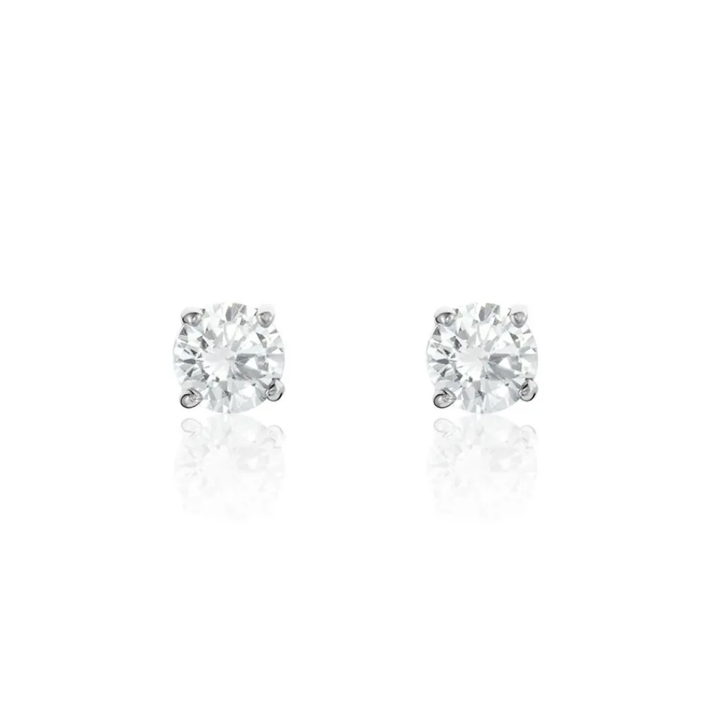 Boucles D’oreilles Puces Or Blanc 375/1000 Oxyde De Zirconium Serti 4 Griffes 5mm