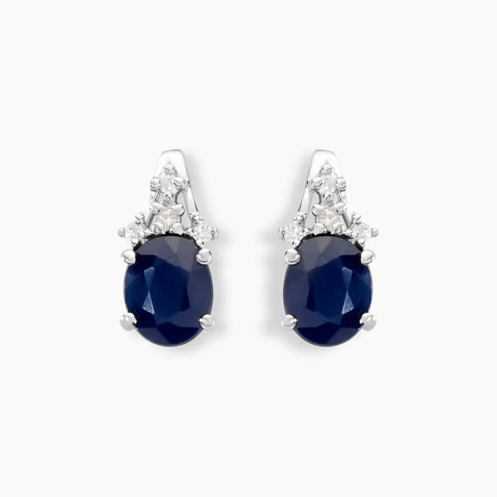 Boucles D’oreilles Puces Or Blanc 375/1000 Saphirs Ovales 0.7ct Et Diamants