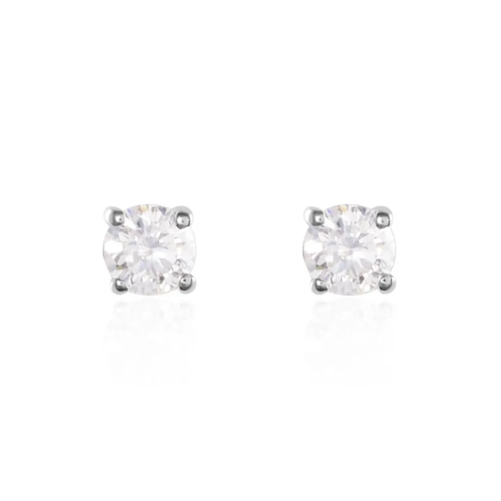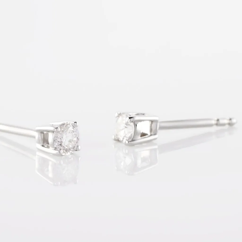 Boucles D’oreilles Or Blanc 750/1000 Puces Diamants 0.20cts Sertis 4 Griffes