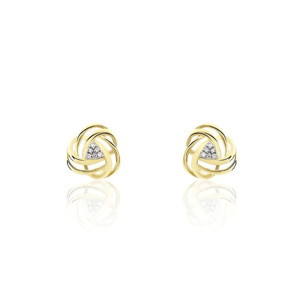 Boucles D’oreilles Puces Or Jaune 375/1000 Nids Et Diamants