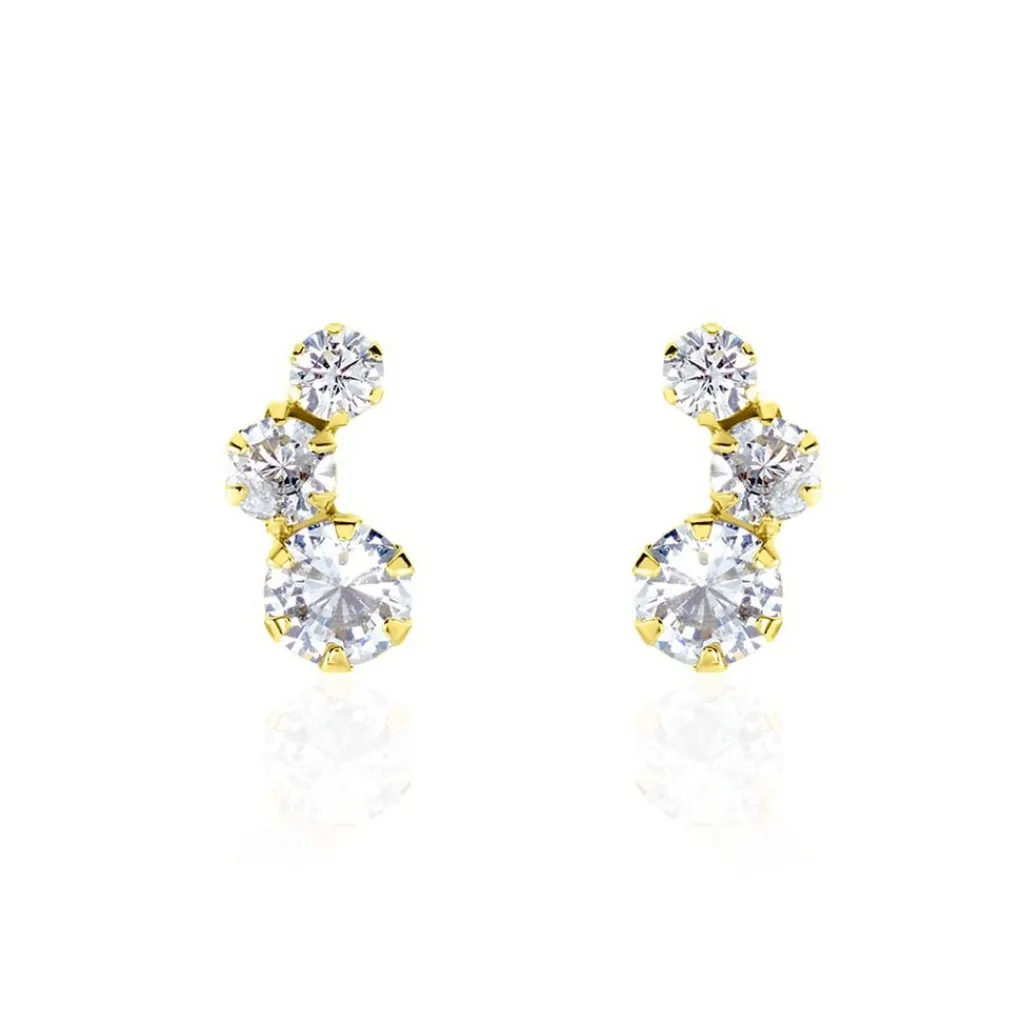 Boucles D’oreilles Puces Or Jaune 375/1000 Barrettes Oxydes De Zirconium