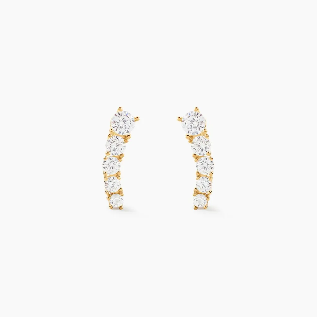 Boucles D’oreilles Puces Or Jaune 375/1000 Barrettes Oxydes De Zirconium