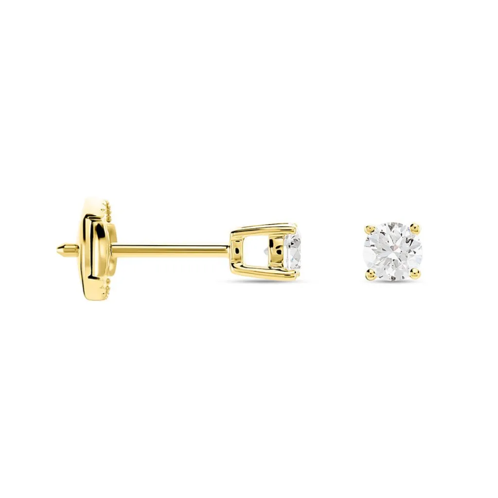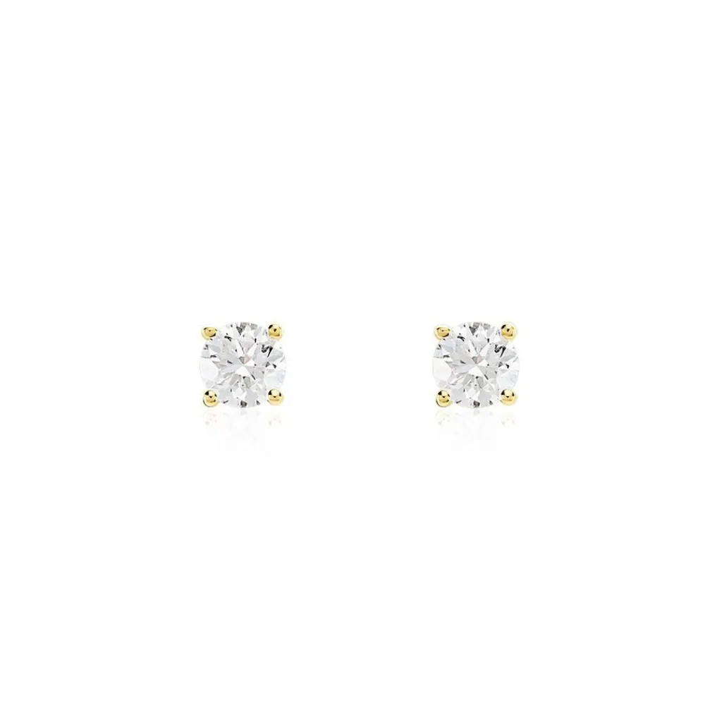 Boucles D’oreilles Or Jaune 750/1000 Puces Diamants 0.30cts Sertis 4 Griffes