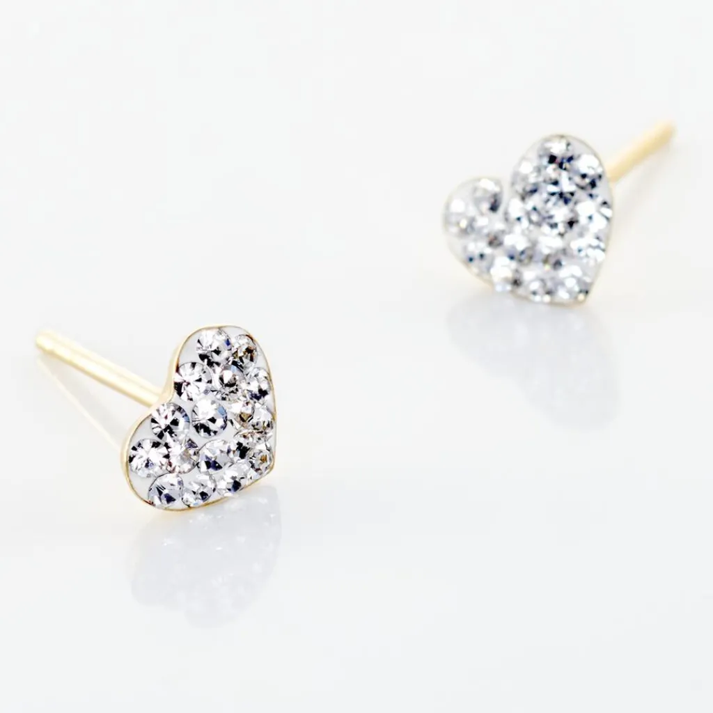 Boucles D’oreilles Or Jaune 375/1000 C艙ur Cristal