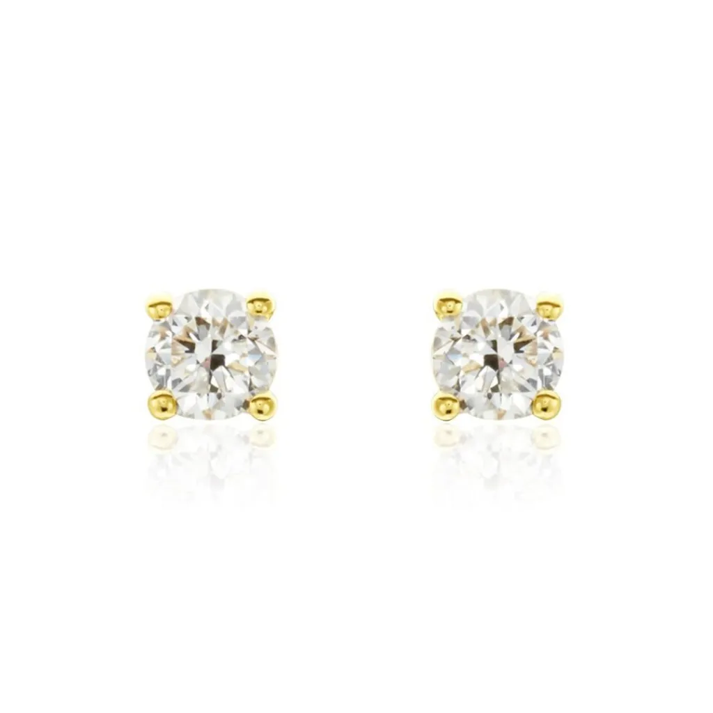 Boucles D’oreilles Or Jaune 375/1000 Puces Diamants 0.60cts Sertis 4 Griffes