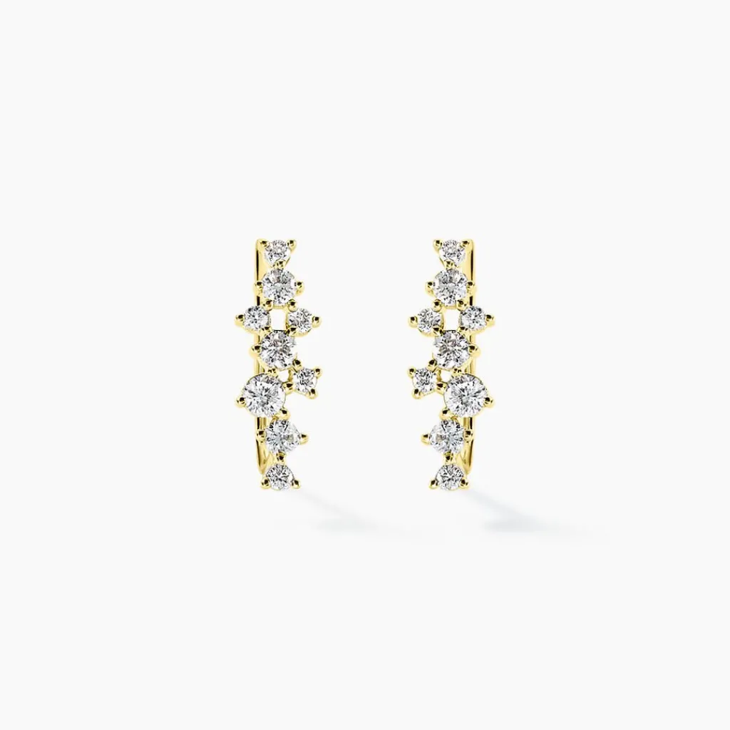 Boucles D’oreilles Grimpantes Or Jaune 375/1000 Diamants Synthetiques 0.131cts Sertis Griffes