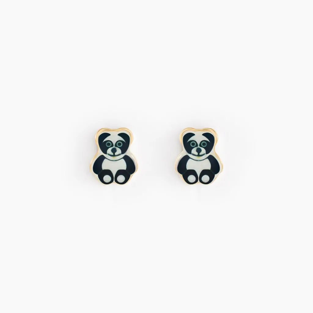 Boucles D’oreilles Or Jaune 375/1000 Puce Ourson Smalto Marron